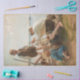 This design features a painting by the Finnish-Swedish artist Albert Edelfelt (1854–1905). It depicts a father building a wooden toy ship with his young sons watching on. The ship has been carefully constructed, with sails, rigging and even a flag flying from the mast. The boys and their dad are sitting on rocks on the coast near the sea, as they build their toy ship. There are some real sailing ships and a steamboat on the water in the distance. The original artwork was painted by Albert Edelfelt in 1886.