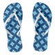 Traditional Japanese Shippo, or "seven treasures" patterned flip flops of interlocking circles with a central flower motif - light blue and white flowers with an indigo and denim blue patterned background