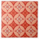 Traditional Japanese Shippo, or "seven treasures" patterned tile of interlocking circles with a central flower motif - flowers in cream and tangerine orange with a deep mandarin and pastel orange patterned background