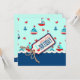 Sweet nautical theme birthday card with sailboats, crabs, and anchors for first birthday. 3D effect twine and tag.