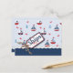 Nautical colours in classic red, white, and blue with anchor and crabs and a novelty boy tag with twine.