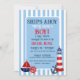 Share your official news with this fun nautical theme party invitation. Personalise it as you choose, this invitation is perfect for baby's first birthday or gender reveal shower. Invitation comes in an assortment of sizes and paper selections. Look for coordinating party ideas all a part of the Oh Boy Ships Ahoy collection.