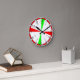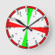 Ship's radio room clock.  Wikipedia: All stations using 2182 kHz were required to maintain a strictly enforced three-minute silence and listening period twice each hour, starting at h+00, h+30. This allowed any station with distress, urgent or safety traffic the best chance of being heard at that time, even if they were at some distance from other stations, operating on reduced battery power or perhaps reduced antenna efficiency, as for example from a dismasted vessel. As a visual aide-memoire, a typical clock in a ship's radio room would have these silence periods marked by shading the sectors from h+00 to h+03 and from h+30 to h+33 in green. Similar sectors were marked in red for what used to be the corresponding silence and listening period on 500 kHz between h+15 and h+18 and from h+45 to h+48.[4] These silence periods are no longer required as the introduction of GMDSS has produced alternative automatic watchkeeping systems and the 500 kHz band is no longer in use for maritime traffic.