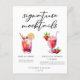 This chic signature mocktails menu paper sheet features custom black typography above 2 non-alcoholic drinks and their ingredients for your wedding bar. A cute Shirley Temple and Virgin Strawberry Daiquiri drawing add a cool flair to your bar menu. Complete with the couple's names and date for their reception.
