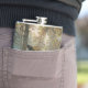 The flask itself is fine. It’s a cheap flask, obviously bought in bulk, however am prepared to overlook that. Given that it is a personalized item, I would have liked to have seen gift boxing instead of the generic packaging. Terrible printing, and/or quality. It’s a cheap, tacky vinyl. It is not cut straight and is also applied in a way that it is overhanging the bottom, causing the glue to catch on items and it will eventually roll and tear, damaging the wrap.
