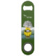 Penguin in yellow rain hat and slicker standing in the rain in a puddle as lightning strikes above, to personalise.