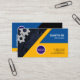 The same design theme flows over to the back of the card. The logo sits in a blue and yellow trapezium which is accentuated by your inverted name. This adds exclusivity and uniqueness to the design. If you decide to upload a photo, the dimensions are 1,000x1,000 pix. Besides these, in the black background, are the business name, address and a slogan tagline option. The latter can be used to advertise your skills and business profile.
