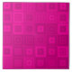 A ceramic tile decorated with a pattern of shocking pink concentric squares to give a cosmopoliton, on-trend feel.