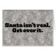Striking charcoal grey grunge abstract cover art with bold typograhy declaring “Santa isn’t real.” Inside is an exact opposite with bright colours on falling snowflakes.