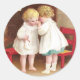 Shoeless Girls Whispering Vintage Christmas Classic Round Sticker