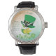 Shoemaker's Lucky Flight Watch: This adorable white cat shoemaker is ready to join your St. Patrick's Day festivities! He's sporting a festive leprechaun hat, holding a shamrock, and raising a mug of green beer. This cute and festive design is perfect for Irish cat lovers and anyone wanting to add a whimsical to their St. Patrick's Day celebration.