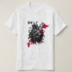 The t-shirt with a black-and-white illustration of a samurai exudes minimalism and strong esthetics. On the front, at the center, there is a detailed depiction of a samurai in traditional armor, holding a stylized sword (katana). The lines are sharp and precise, emphasizing the contrast between light and shadow, creating a dramatic sense of depth.