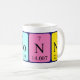 Shonna spelled out as S Ho N Na (Sulfur Holmium Nitrogen Sodium) on a mug for the scientist in you.