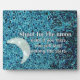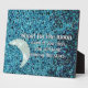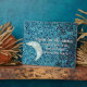 Blue and white marble mosaic of the moon and stars featuring the quote “Shoot for the moon, even if you miss you will land among the stars.”