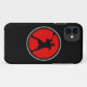 Locked, cocked and ready to rock. Silhouette of lacrosse player in the midst of firing a shot on goal. Circular emblem design in black, grey and red. Lacrosse shooter iphone 5 cover.