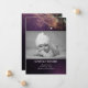 Plum purple and gold newborn baby photo birth announcement with twinkling shooting star and starry night sky