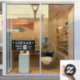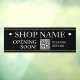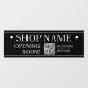 SHOP NAME, Opening Soon Sign: Generate your QR code for store entry door or window in white text on black background with QR code message.