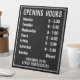 Shop Opening Hours or Store Opening times to display on a counter or shelf. Hairdresser opening hours or barbershop hours when open to customers on display, as typical examples of use. Would suit any retail outlet.