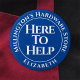 Shop Staff Here to Help Badge. A badge for a shop worker or shop staff. Change the wording to your business details. Shop Assistant badge. Official Store Assistant badge. Can I help? White wording on a blue background.