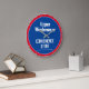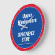 Wall Clock for a Village Shop, Local Stores, Convenience Store, or Retail Outlet. Edit the design to change the wording to suit. Blue and Red colours.