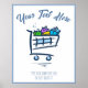 Shopping / cart / trolley / venture with happy smiling bags / gifts. Hand drawn illustration. Customisable Template, promotion poster. Blue theme.