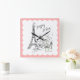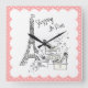 Cute girly doodle shopping in Paris France wall clock featuring the Eiffel Tower with chic & stylish shoes, shoe boxes and hearts set on a white background with a pink polka dotted background. Our whimsical Paris wall clock would be a great addition to any room belonging to a fashionista! Available in our shop in a large variety of colours.