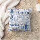 This unique pillow features shades of blue with your own family name in a modern and trendy typography pattern of different fonts. Great gift for the new home owner or if you are looking for blue and white home decor. Available for both short or long last names.