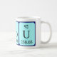 Shou spelled out as S Ho U (Sulfur Holmium Uranium) on a mug for the scientist in you.