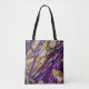 An abstract design in purple, gold, and white, resembling a rocky terrain, covers this Shoulder Tote Bag.
