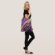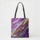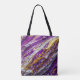 An abstract design in purple gold and white resembling rugged terrain, covers this Shoulder Tote.