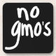 Voice your opinion on genetically modified foods and the health risks associated with these foods when you entertain. These coasters will show how you feel with the words "no gmo's" in bold white text on a black background. GMO foods are banned in the European union but are sold in the US without labelling. Show off your feelings and concerns by saying "No GMO's". Some states are beginning to require labels, but most aren't at this point. Fully customisable.