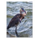 A proud GBH stands at the river edge showing off the large fish it has just caught.