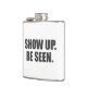 The flask itself is fine. It’s a cheap flask, obviously bought in bulk, however am prepared to overlook that. Given that it is a personalized item, I would have liked to have seen gift boxing instead of the generic packaging. Terrible printing, and/or quality. It’s a cheap, tacky vinyl. It is not cut straight and is also applied in a way that it is overhanging the bottom, causing the glue to catch on items and it will eventually roll and tear, damaging the wrap.