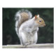 This gorgeous photo print features a cute photograph of a male Grey Squirrel (Sciurus carolinensis) sitting on a Garden fence. The squirrel has a grey body, white belly and a brown head and tail. This funny squirrelis facing sideways as if it is showing its best side to the camera. The squirrel has its tail curled delicately over its back and looks very pretty. The dark background of the trees shows this gorgeous rodent off perfectly wonderfully.