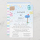Baby "shower by mail" invitations for a girl or boy, with colourful rainbow sprinkle raindrops. Super cute smiling mailbox stands among the pastel coloured gifts and packages. Simple and sweet baby shower invitation idea for a shower themed virtual baby shower. Easily edit to include your party meeting information and gift mailing address. Gender neutral.