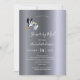 A baby shower by mail/virtual long distance shower invitation card. A faux silver metallic looking background, white letters. With a flying stork holding a baby boy. Personalise and add the name of the mum-to-be and your Zoom/Skype party details.
