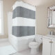 This white shower curtain is designed with speckled grey stripes to go with my speckled grey bath mat.