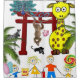 Shower Curtain Zoo Giraffe Peacock Monkey