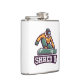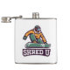 The flask itself is fine. It’s a cheap flask, obviously bought in bulk, however am prepared to overlook that. Given that it is a personalized item, I would have liked to have seen gift boxing instead of the generic packaging. Terrible printing, and/or quality. It’s a cheap, tacky vinyl. It is not cut straight and is also applied in a way that it is overhanging the bottom, causing the glue to catch on items and it will eventually roll and tear, damaging the wrap.