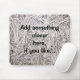 The mousepad's surface appears to be covered with shredded paper. The text can be modified to suit the user's taste or eliminated entirely if desired.