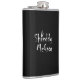 The flask itself is fine. It’s a cheap flask, obviously bought in bulk, however am prepared to overlook that. Given that it is a personalized item, I would have liked to have seen gift boxing instead of the generic packaging. Terrible printing, and/or quality. It’s a cheap, tacky vinyl. It is not cut straight and is also applied in a way that it is overhanging the bottom, causing the glue to catch on items and it will eventually roll and tear, damaging the wrap.