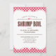 Shrimp boil invitations with red table cloth pattern design. Customise the wording of your party needs.