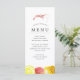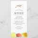 Personalised shrimp themed food menus for your next Lobster Bake Party or seafood event. It features a watercolor styled illustration of a shrimp. Underneath this are spots for your event menu information.