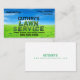 Lawn service business card with shrubs spelling out lawn service