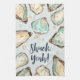 This funny, coastal chic kitchen towel features soft cream and aqua watercolor oyster and pearl illustrations, with "Shuck Yeah!" in hand sketched script lettering. Perfect for beach houses, coastal abodes, or anyone who loves oysters and fresh shellfish.