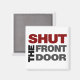 Shut up! Shut your mouth! Shut your face!... those would all be rude, so say it as nice as possible with this funny Shut the Front Door T-shirt. Big, bold, in your face block letters in deep red, grey and black colours, formatted in a square shape to get the message across loud and clear.