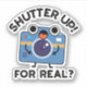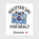 Shutter Up For Real Funny Camera Photography Pun features a cute camera looking surprised. Perfect pun gift for family and friends who love cute camera puns.
