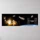 Panoramic poster displays the highlights of the Shuttle program, including launch, Hubble, the ISS, and the MMU