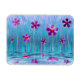 A digital drawing of cute stylised purple flowers with shining red centres. They're peering quizzically at you from the tall grass beside a pool of clear rippling water.