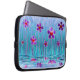 A digital drawing of cute stylised purple flowers with shining red centres. They're peering quizzically at you from the tall grass beside a pool of clear rippling water.